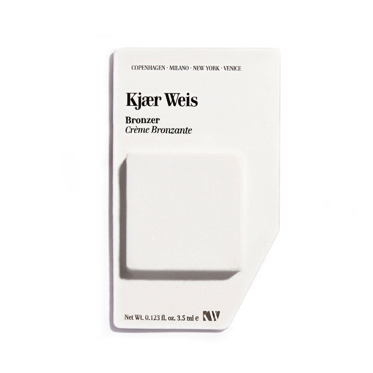 Use the Bronzer to contour or bronze on light to medium skin and to highlight on deeper tones. The soft, blendable texture is best applied with the warmth of your fingers or with the Kjaer Weis Blush Brush